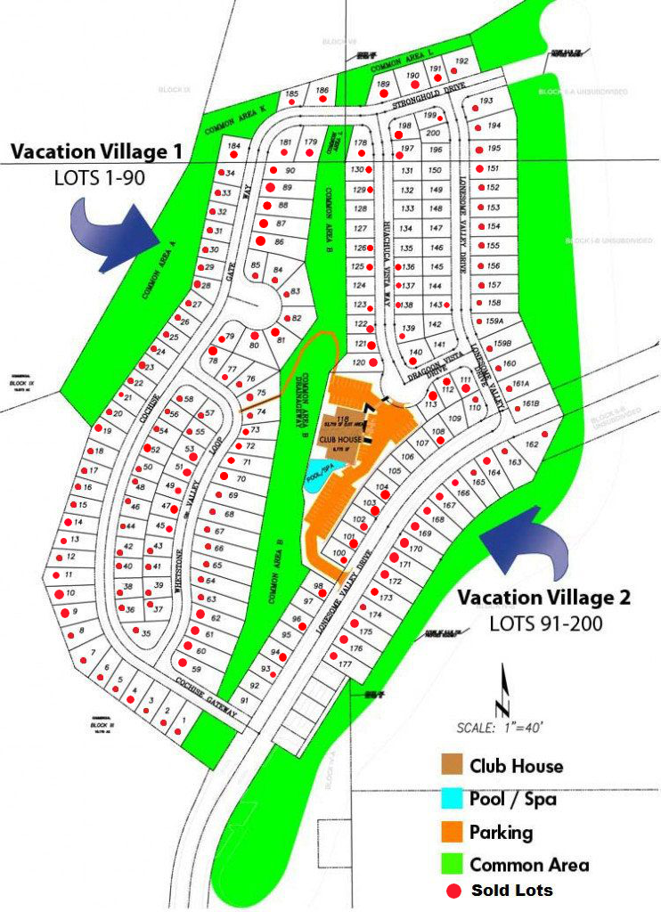 Vacation Village lots are now available for purchase in both Phase I and Phase II. It is a gated community, for ages 55 and over.